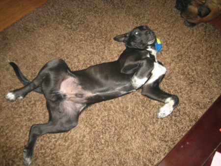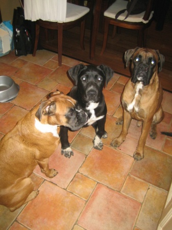 Új kutyánk Katey, egy fekete 3 és fél éves cane corso szuka, van egy testvére is, aki a jövõ héten jön hozzánk. Gazdája adta le, mert kertes házból lakásba költöztek és nem jön ki egymással a két kutya. Választani nem tudnak közülük ezért jön mindkettõ.