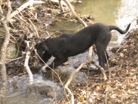 Aztán meglepibõl embertelenül körbefocta a konyhát, 1 óra séta után. Közben nem ért rá, mert ugatni kellett :-).