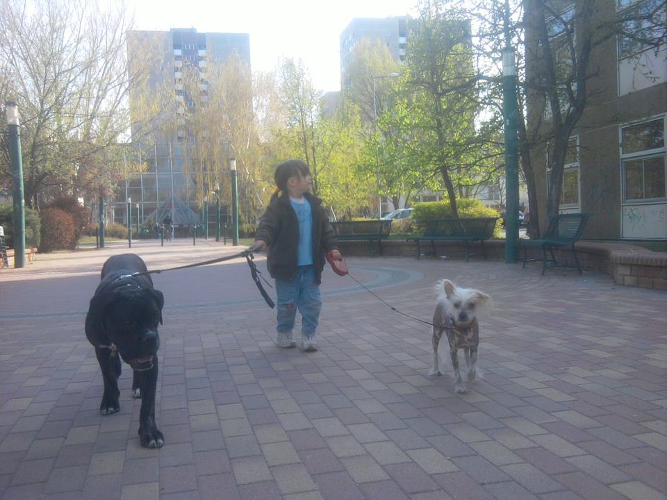 "A csajok csodálatos fejlõdéseken mennek keresztül,nap mint nap fejlõdnek, már nagyon ritkán ilyednek meg, sõt már ha eldõl a partvis, nem szaladnak világgá.Az utcán már Éden is 1 szóra igazodik, és nem húz mint az igásló. Héra a csendes megfigyelõ az utca népével szemben de nem kerül 10 métert ha jön egy ember és szabadon van. Éden teljesen más, szabadon érdeklõdve játékosan közeledik akár cica akár kutyához.Az emberek egyáltalán nem zavarják. De nagyokat szaladni,mint az örültek csak egymással hajlandóak, ha részt akar másik kutyi venni az örült száguldásban Héra kiválik, és megfigyelõ állásra vált, vagy érdektelenül lábnál ül. Az autókat nem szeretik,nem nagyon kerülik, de nem a szívük csücske.több játékról hiszik azt hogy legó és akár milyen masszív vagy tömör pár perc múlva apró pici darabban végzik.a kedvenc játék, apa zoknija, ruhái, már nem eszik meg,csak be gyûjtik."