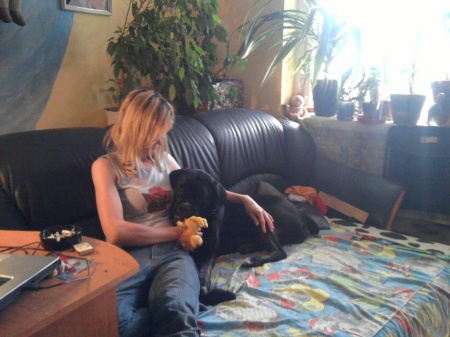 Banett most nálam lakik, más kutyákkal, állatokkal teljesen jól kijön, sõt kifejezetten igényli a kutyatársaságot. Pórázon szépen sétál. Idegen emberektõl fél, egyenlõre, de dolgozunk rajta, hogy ez is megoldódjon.
